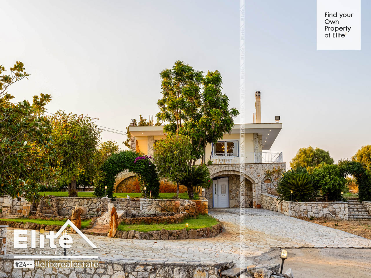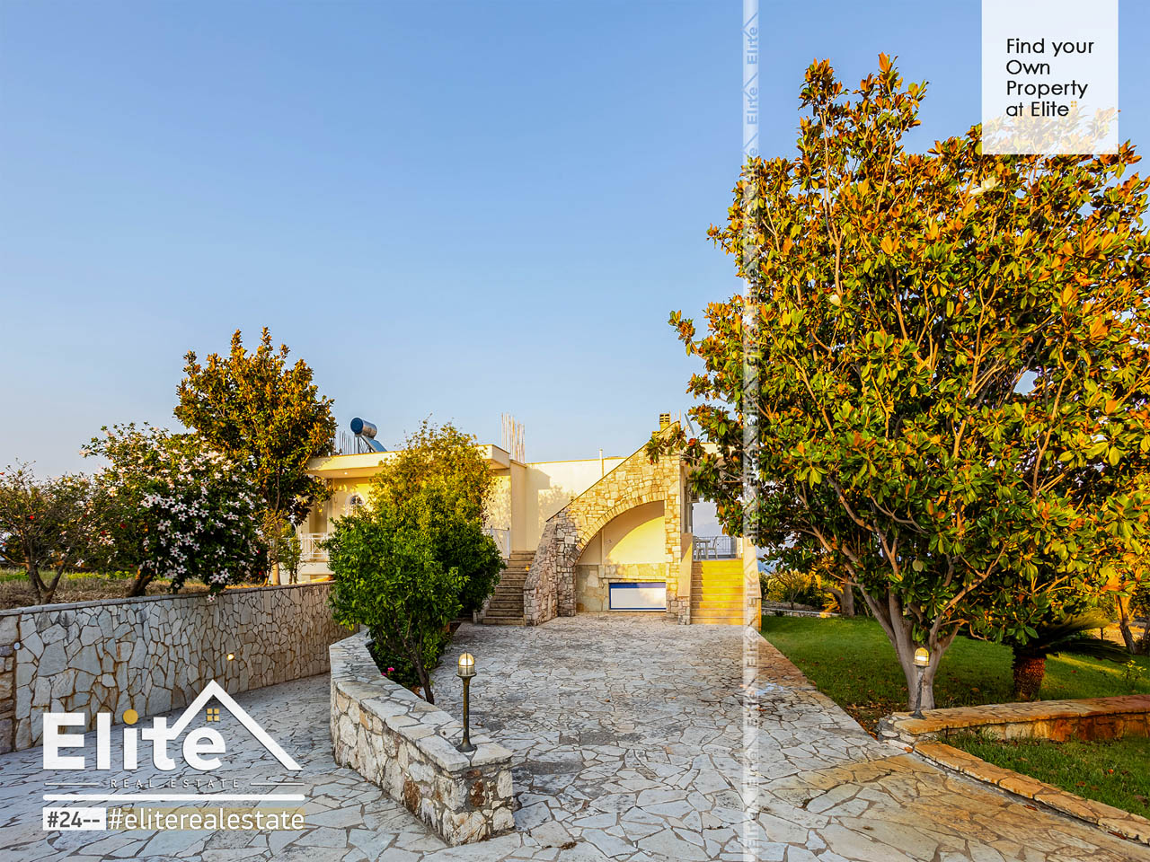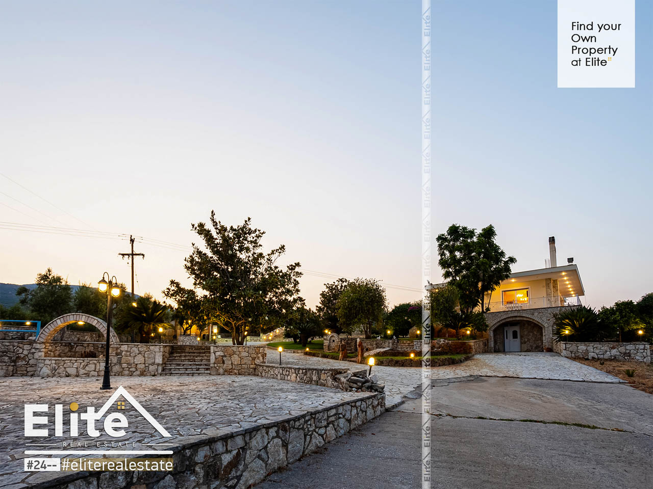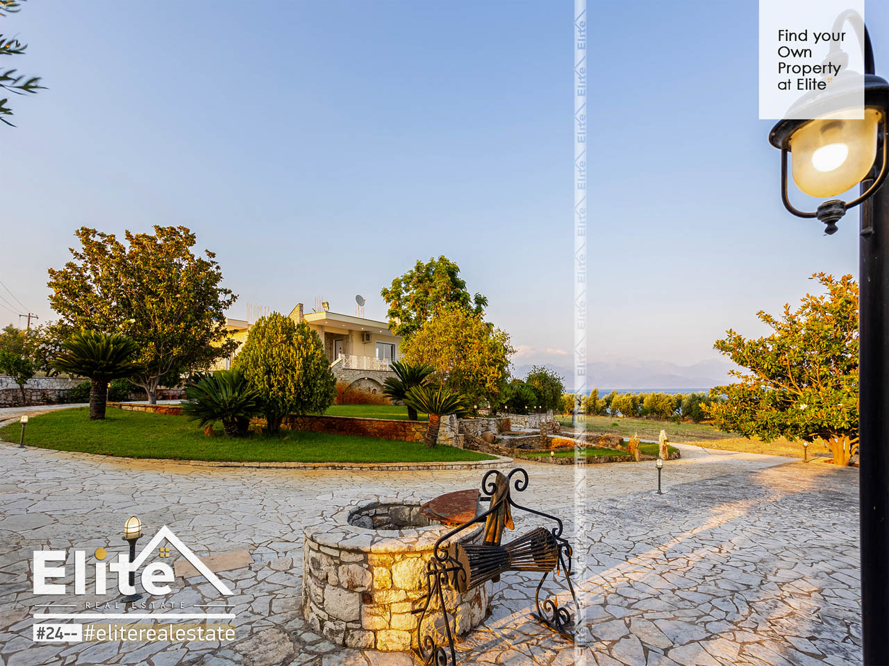 Der Garten atmet. Rasen, Bäume und eine sorgfältige Bepflanzung schaffen Privatsphäre und natürlichen Schatten und bilden den idealen Rahmen für einen entspannten und erholsamen Urlaub. Luxushaus in Messinien. Die kleinen Seen durchbrechen die Stille mit dem Rauschen des Wassers, während die großes Schwimmbad wird in den Sommermonaten zum Mittelpunkt des täglichen Lebens. Der Grillplatz und der beleuchtete Platz sind für Abende mit Freunden und Familie reserviert, mit dem Sonnenuntergang des Messinischen Golfs als Kulisse.