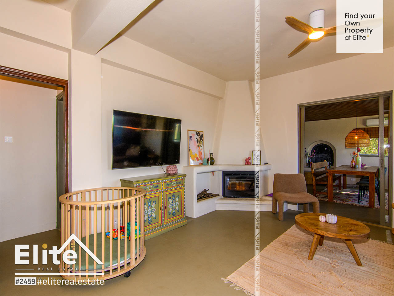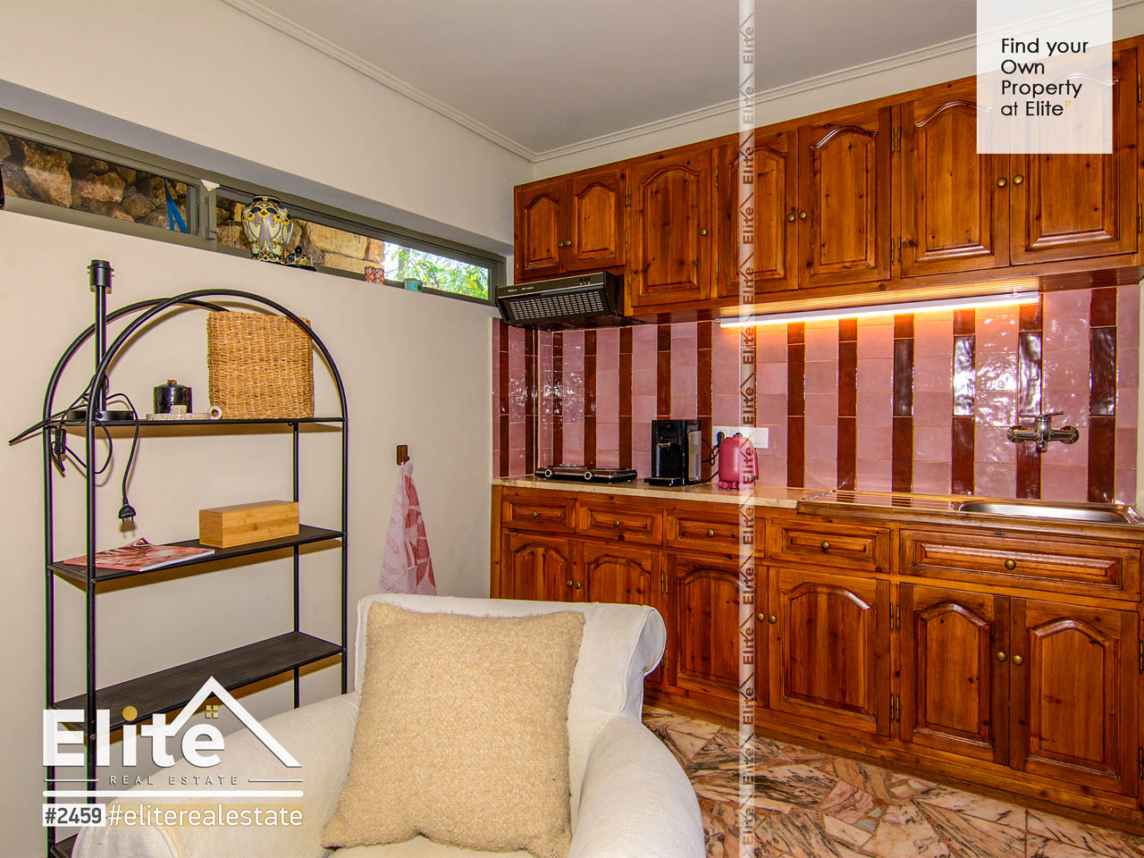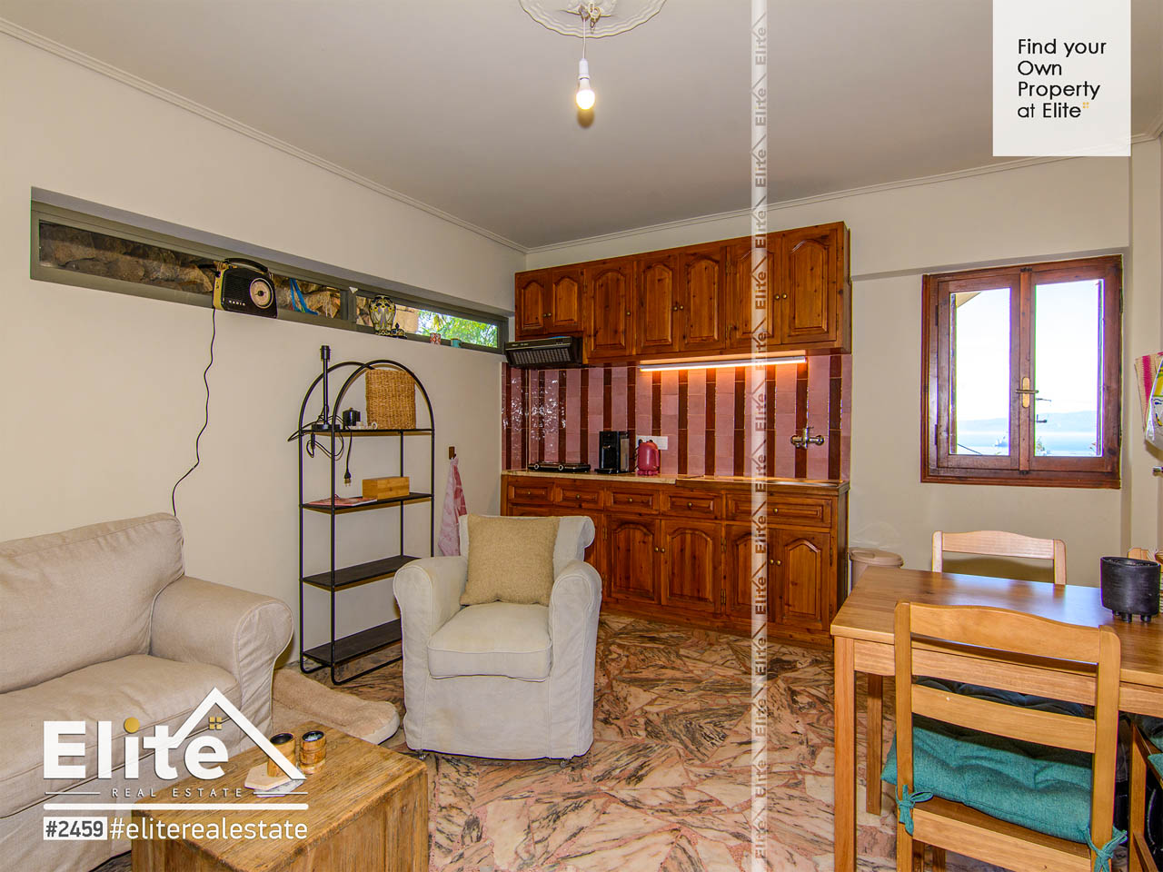 On the elevated level is a autonomous apartment 56 sq.m., fully renovated in 2025. The open plan living and kitchen area has been designed to serve everyday use, while the large bedroom offers comfort and privacy. The bathroom of the level incorporates modern materials and careful aesthetics, making the apartment ideal as a guest house, independent residence or investment option.