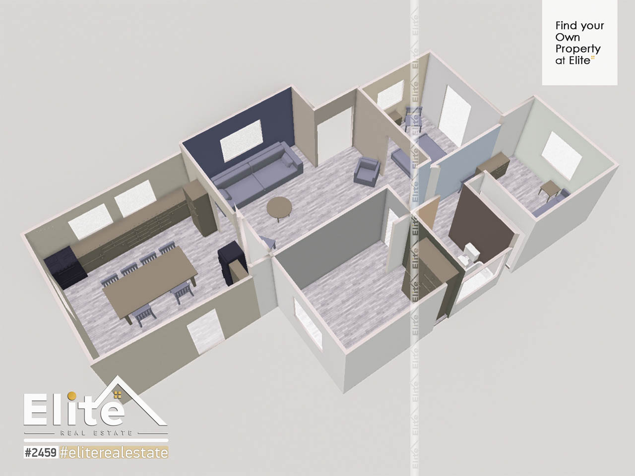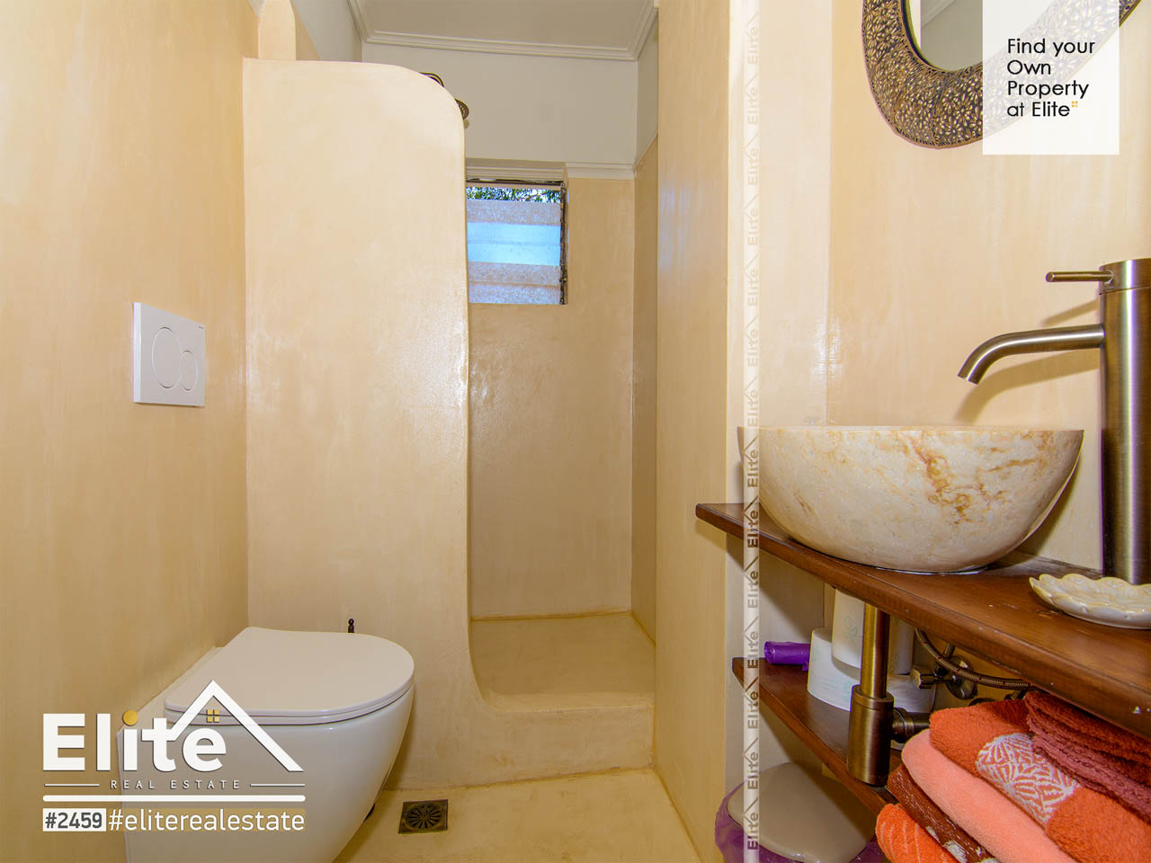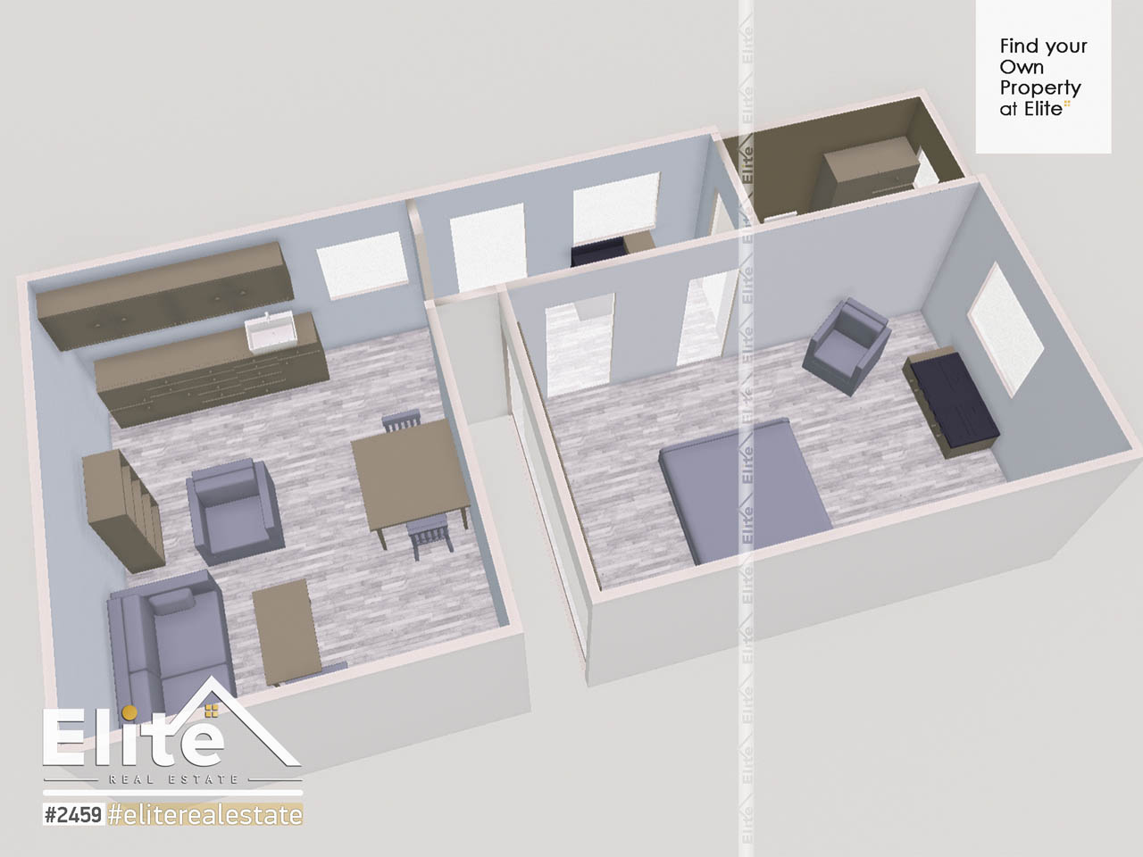On the elevated level is a autonomous apartment 56 sq.m., fully renovated in 2025. The open plan living and kitchen area has been designed to serve everyday use, while the large bedroom offers comfort and privacy. The bathroom of the level incorporates modern materials and careful aesthetics, making the apartment ideal as a guest house, independent residence or investment option.