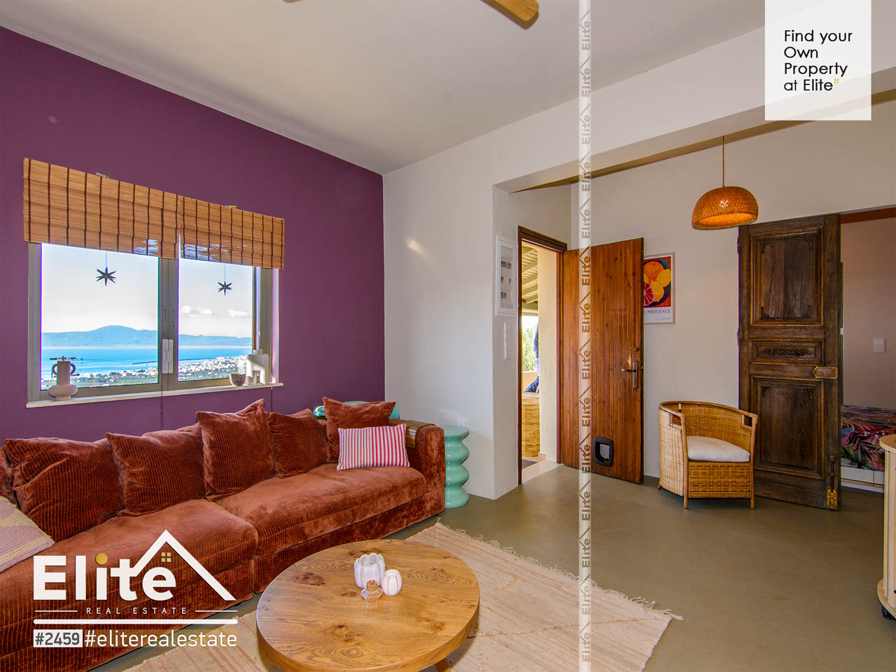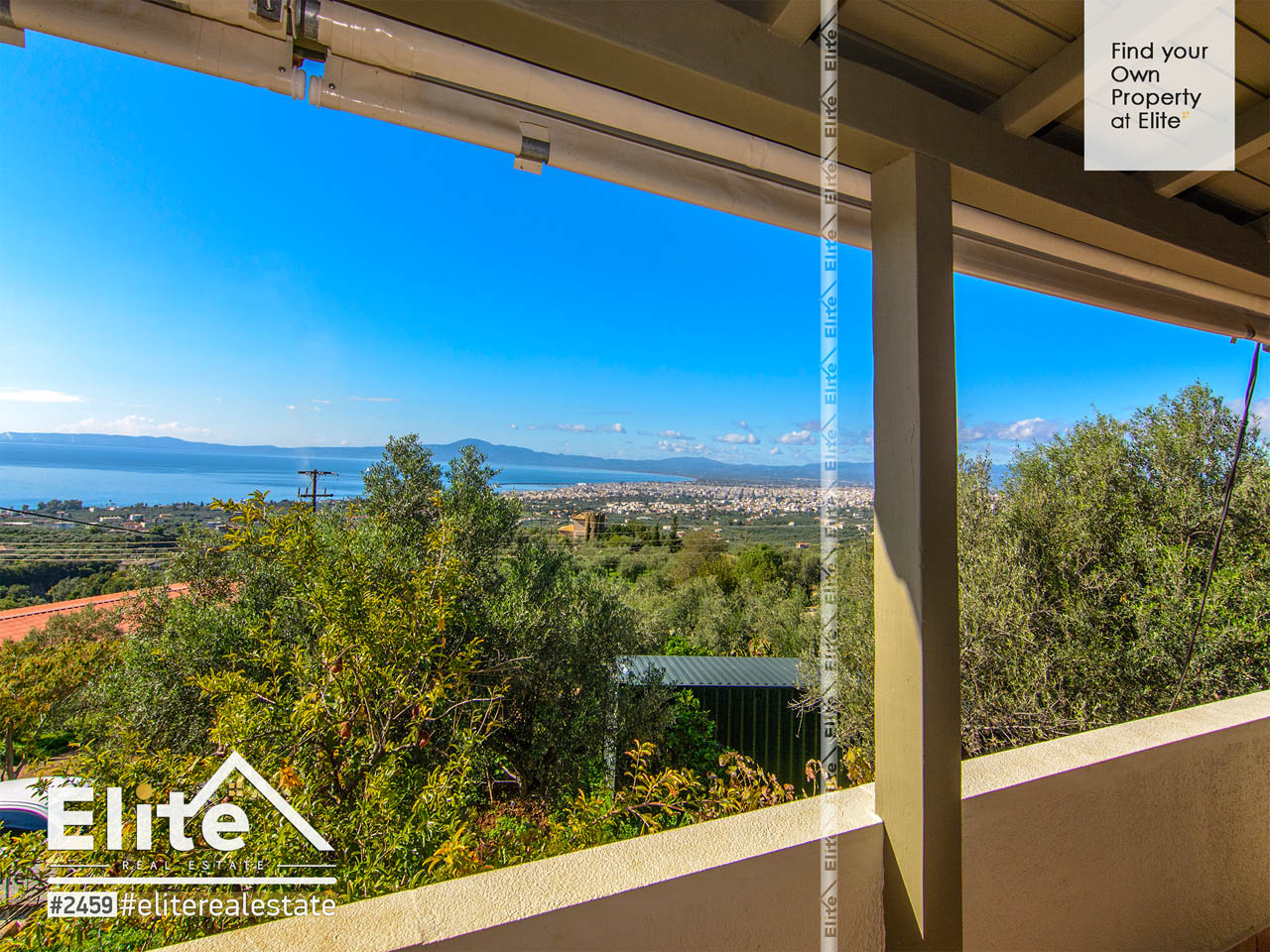 At plot of 1.788 sq.m., carefully landscaped with flat surfaces, greenery, olive trees, ample parking space and complete fencing, is a two-level residence with clear, unobstructed view of the whole of Kalamata. This view is a strong competitive advantage and is perceived from all the main areas of the residence.