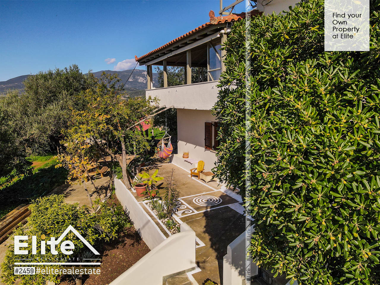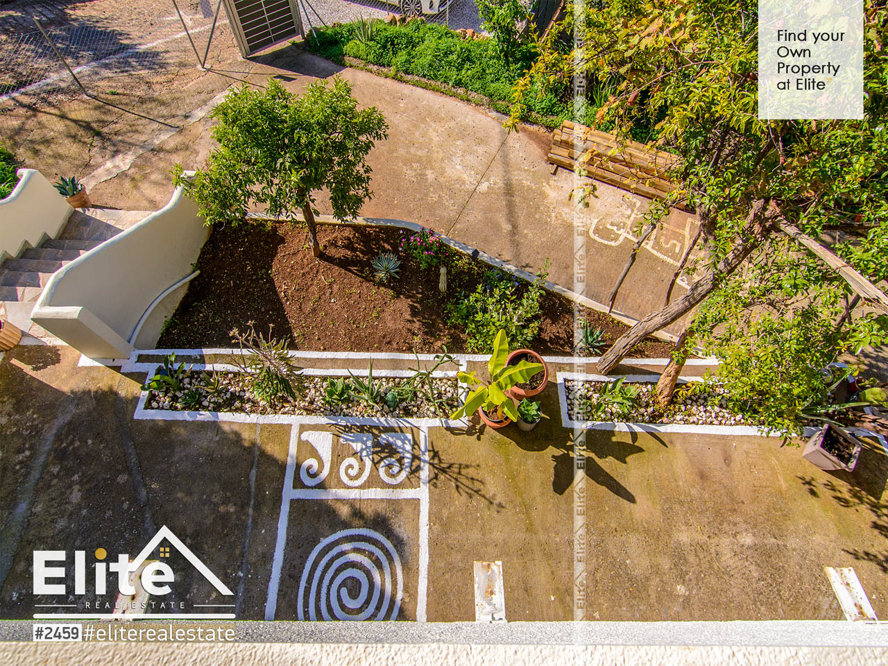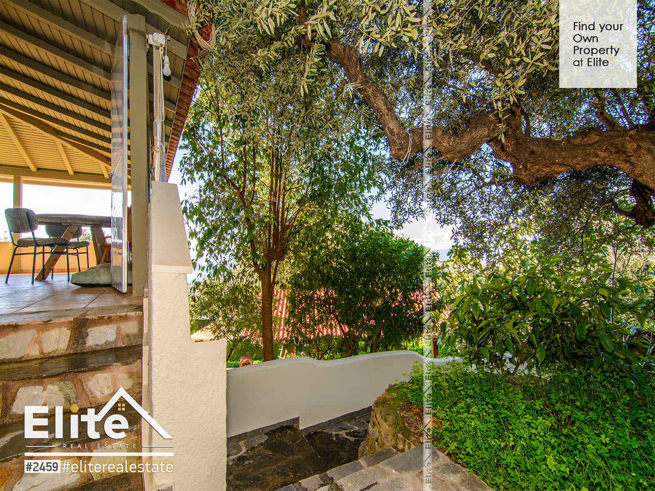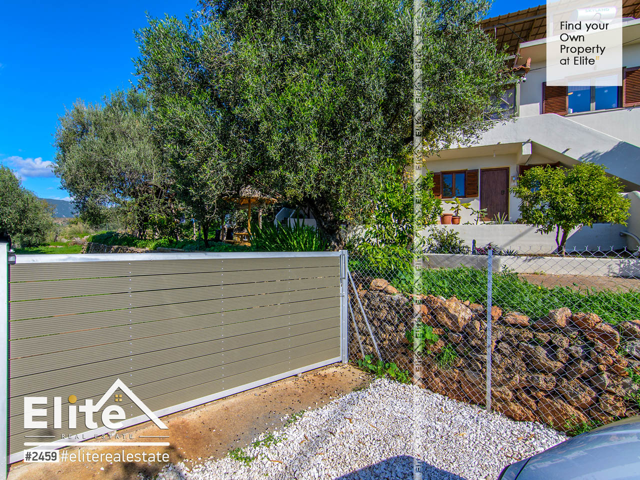 The exterior completes the picture. With greenery, olive trees, fruit trees, easy access for parking and full privacy, creates an environment of comfort, practicality and high quality living.
