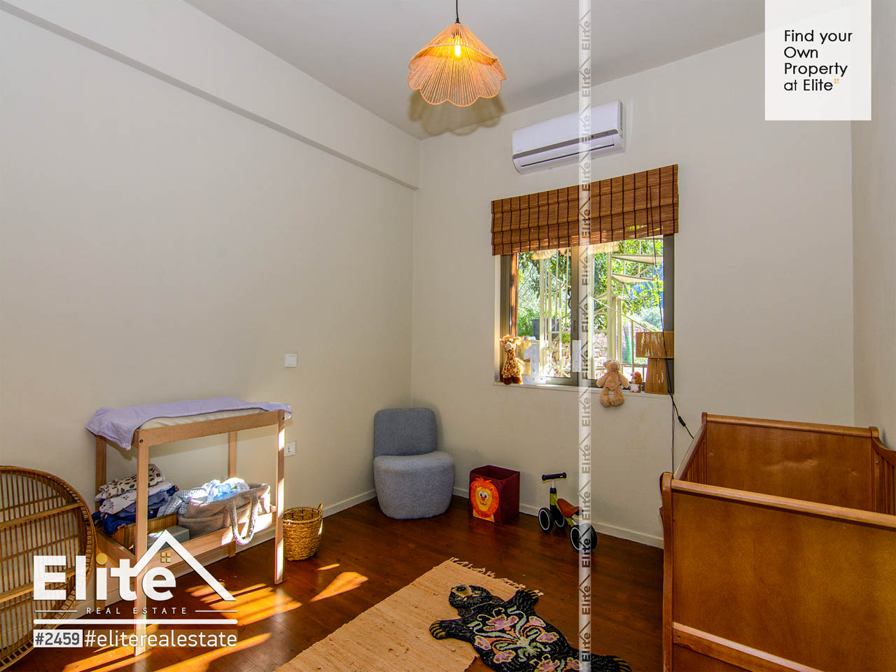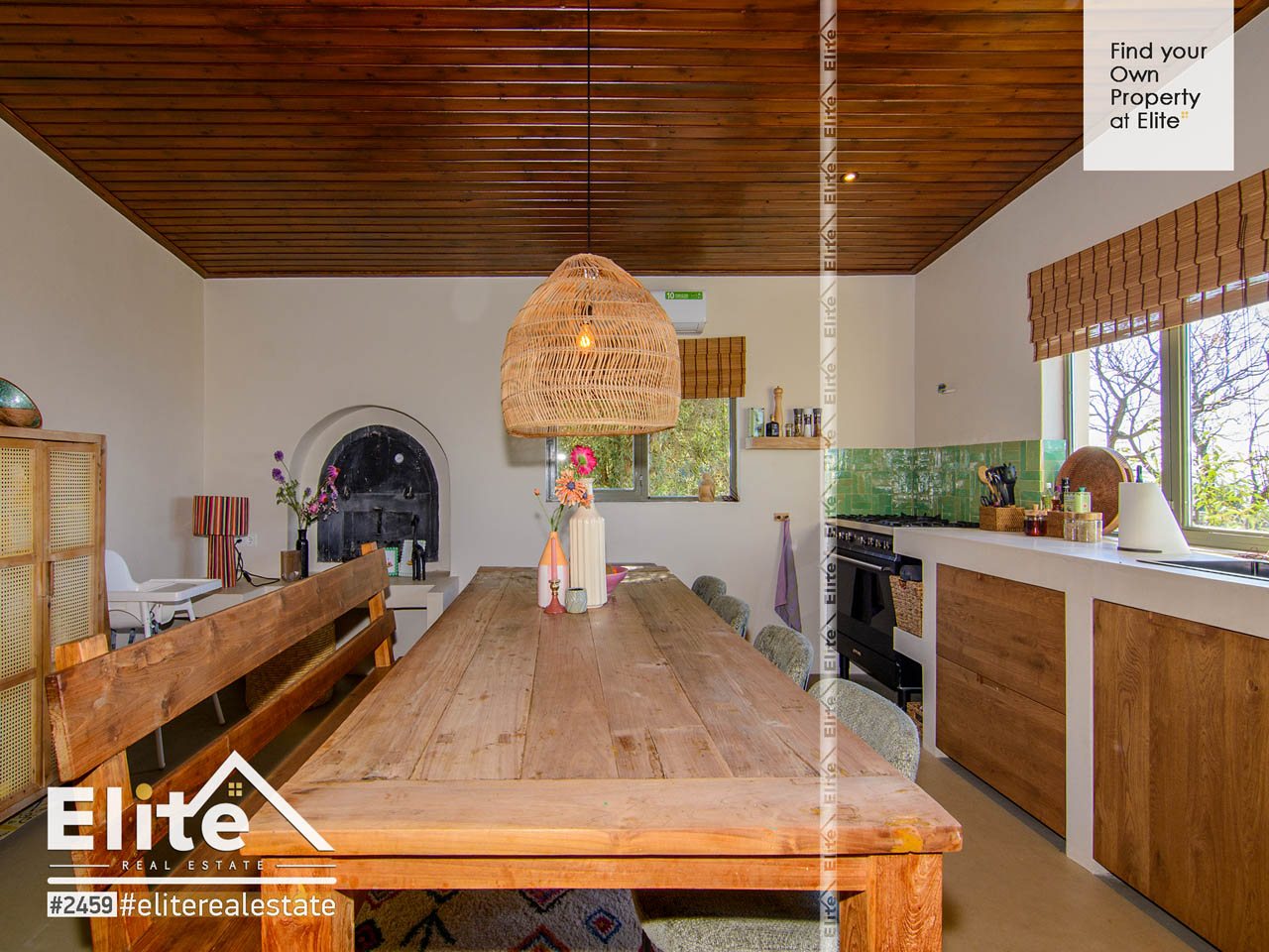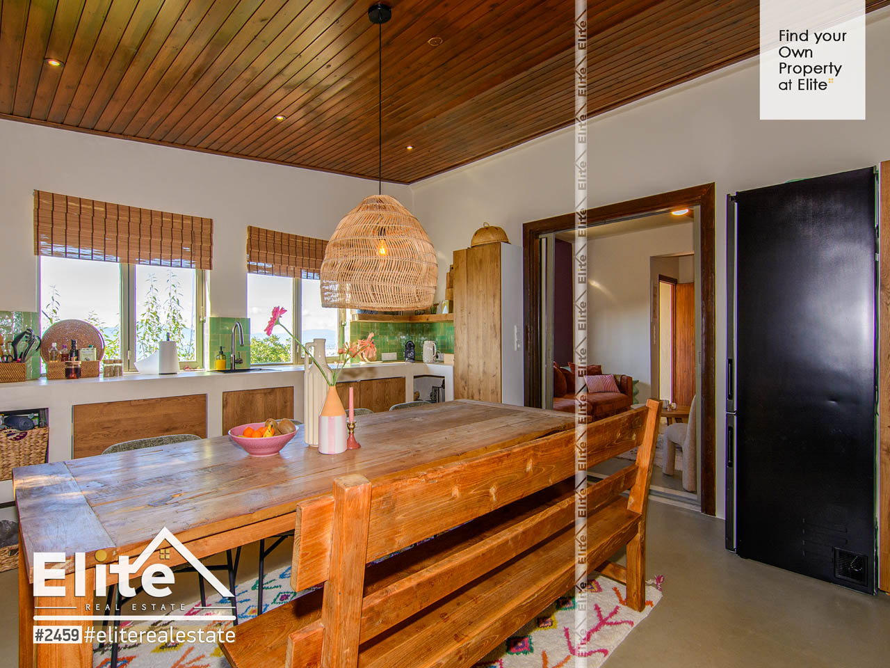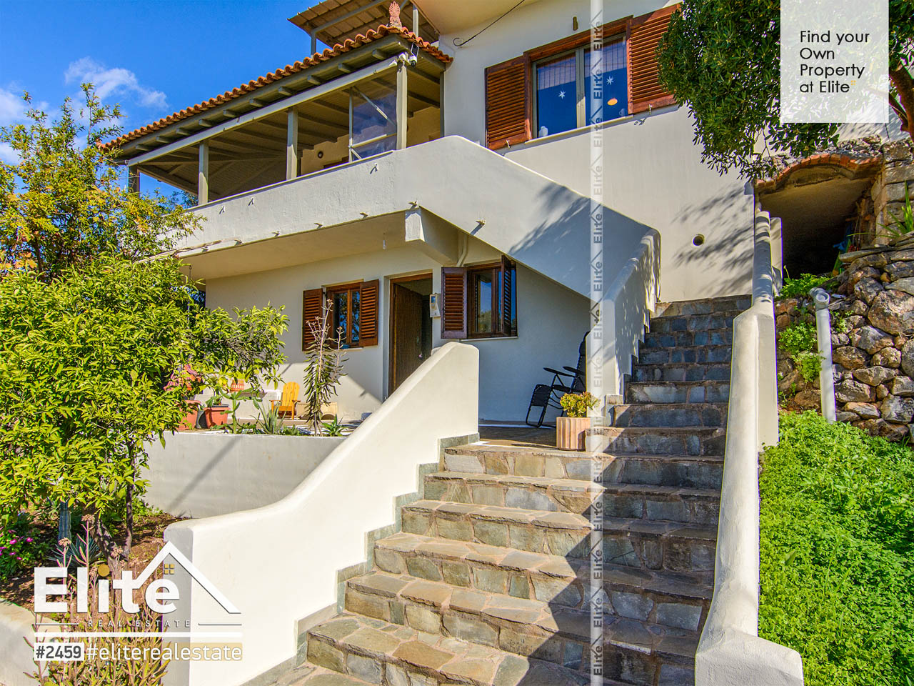 The exterior completes the picture. With greenery, olive trees, fruit trees, easy access for parking and full privacy, creates an environment of comfort, practicality and high quality living.