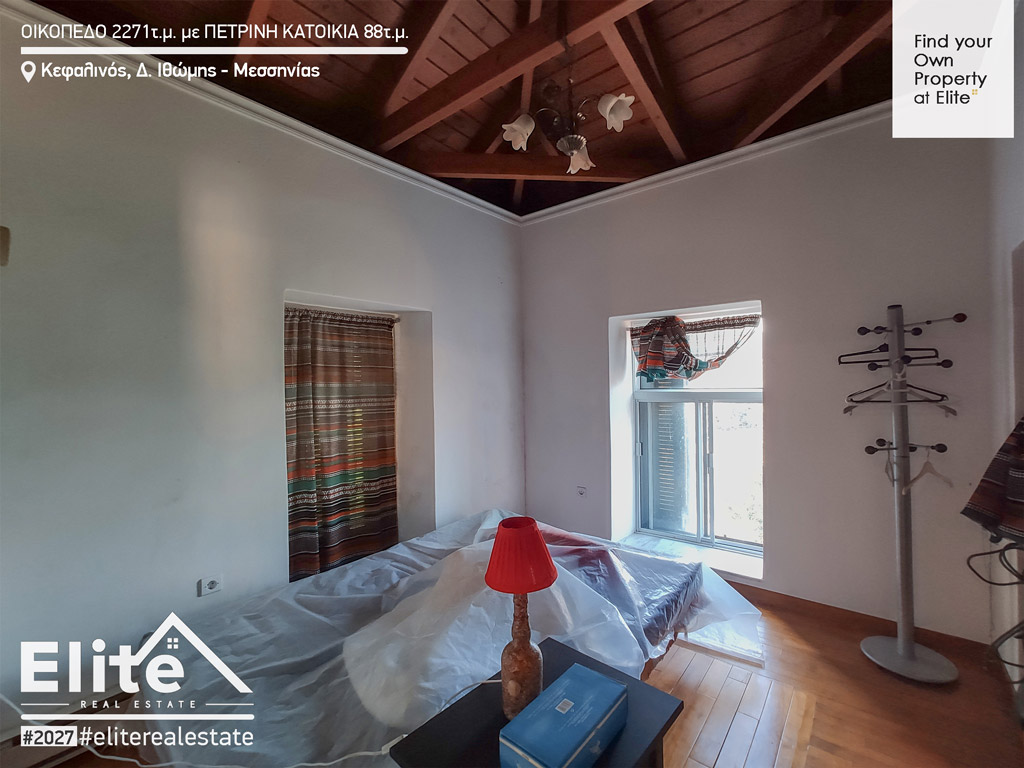 Στο γραφικό χωριό Κεφαλινός του Δήμου Ιθώμης, λίγα μόλις λεπτά από τον αρχαιολογικό χώρο της Αρχαίας Μεσσήνης, διατίθεται προς πώληση ανεξάρτητη μονοκατοικία δύο επιπέδων, συνολικής επιφάνειας περίπου 176 τ.μ. (88 τ.μ. υπερυψωμένο ισόγειο και ισοδύναμο υπόγειο), μέσα σε περιφραγμένο οικόπεδο 1.400 τ.μ. με πύλη εισόδου.